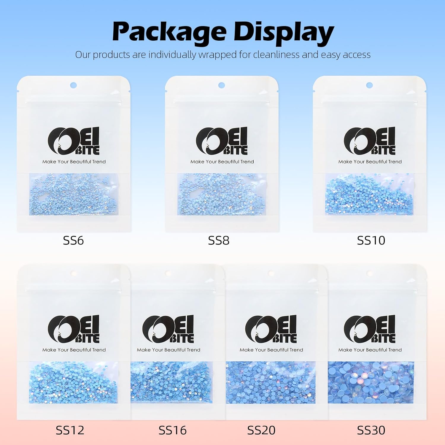 - Product Packaging: Bags packaging SS16 3.8~4.0 MM - 1440 Pcs F Light blue flatback rhinestones