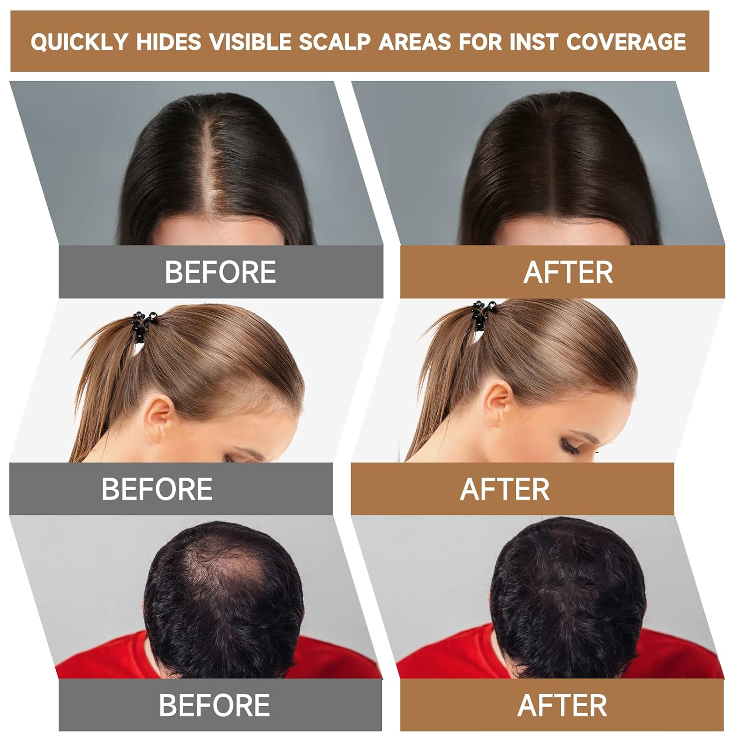 - Natural Hairline Modification - It is delicate and soft, not easy to smudge, and naturally fills the hairline. Made from safe, all-natural ingredients, this soft red brown hair shadow powder won’t clog your pores or damage your hair. Suitable for all hair types and textures. t stays on for 14+ hours, providing long-lasting coverage that’s sweatproof, windproof, and easy to clean with regular shampoo.