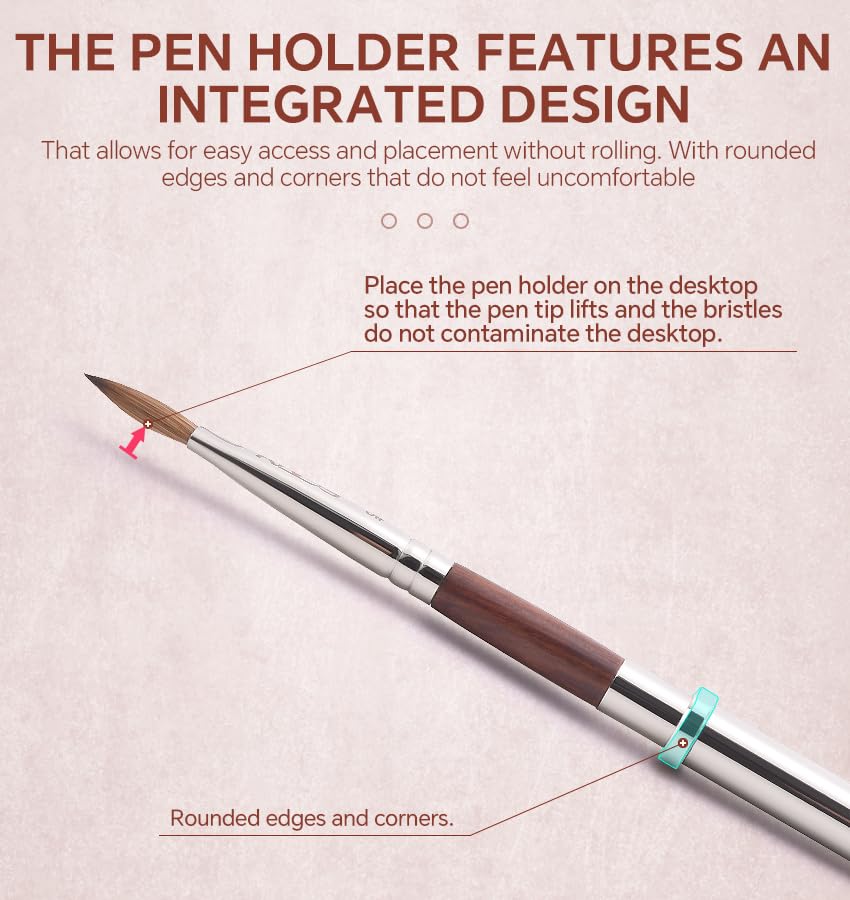 - The patented pen holder design comes with a built-in pen holder, ensuring that the pen does not roll off when placed, and the brush head does not touch the desktop, keeping the bristles and nail art desktop clean.