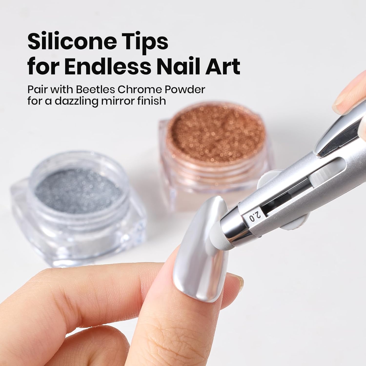- Soft Silicone Tips for Enhanced Creativity: The soft and flexible silicone tip seamlessly with Beetles Chrome Nail Powder for dazzling mirror finishes. Soft material for smooth blending, use for blending gradients, adding blush tones, securing stickers or decals, and transferring foils