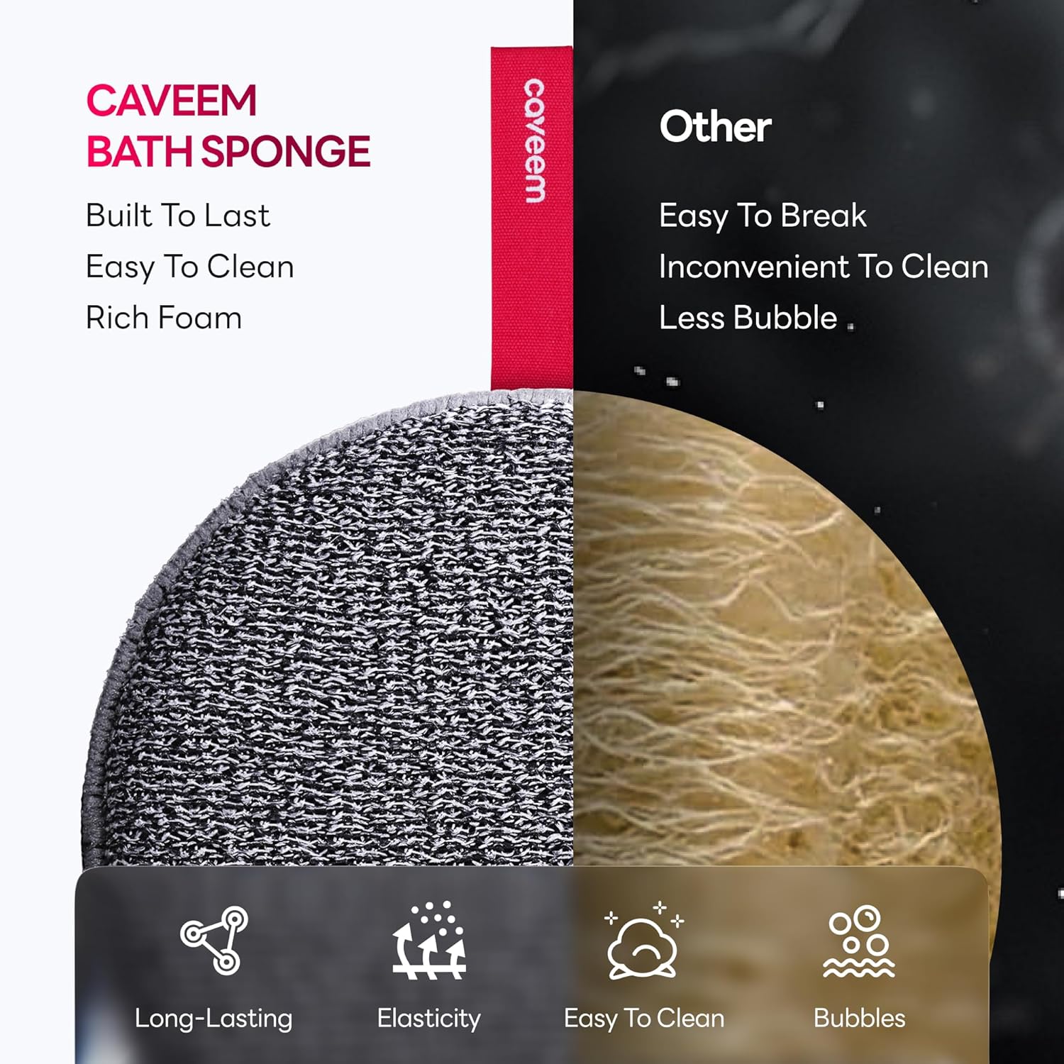 - [REUSABLE HOME AND TRAVEL ESSENTIALS ] Caveem exfoliating body scrubber is reusable, and essential for home and travel use, offering sustainable grooming solutions for your family to comfort themselves. Please gently apply light pressure for optimal exfoliation and comfort