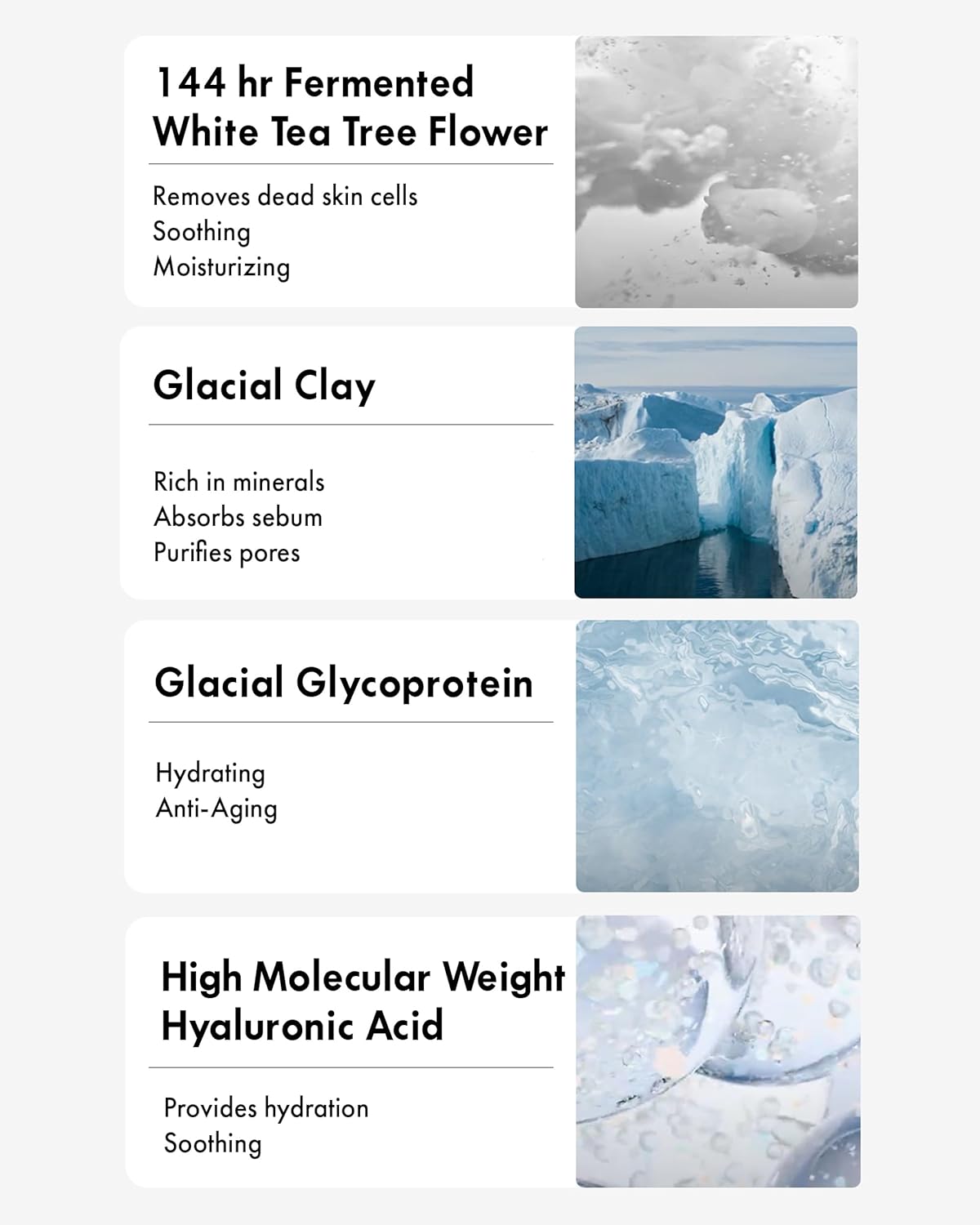 • RICH IN SKIN-SOOTHING INGREDIENTS: Formulated with sensitive skin in mind, this mask includes key ingredients like fermented white tea tree flower, glacier soil, Antarctic microbial glacier sugar protein, and polymer hyaluronic acid, which work together to moisturize and soothe the skin effectively.