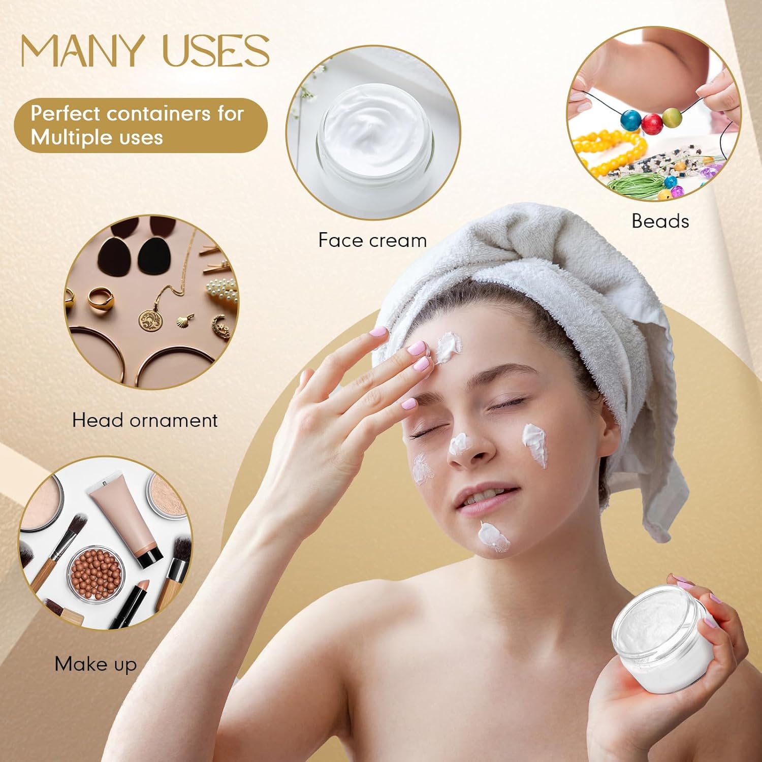 - Multifunctional Containers: you can use these plastic jar containers with lids to store your personal beauty products for travel, ideal to dispense; You can also use it to store homemade sugar scrub cream, body lotions, bath butter soap gifts, body butters and hair moisturizers, small and easily lost jewelry, small crafts like beads, seasonings, acrylic paints, flower seeds, rhinestones etc., which will keep your things organized and make your life more convenient