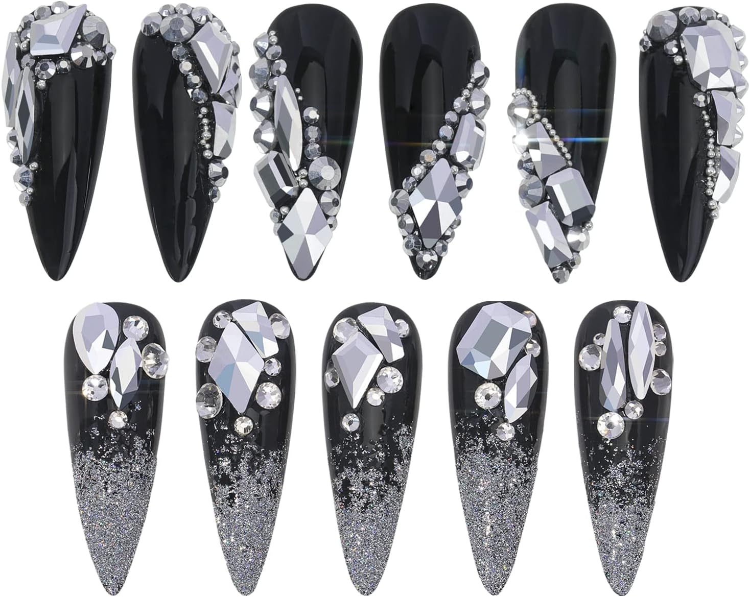 - ★Multi shaped - Bling Silver nail rhinestones Is made of High-quality glass and has delicate and exquisite Shine is very hard and not easily break. the crystal Silver coating Is bonded firmly to the outer surface of each crystal bead with durable sparkling and brightness crystal rhinestones gems.