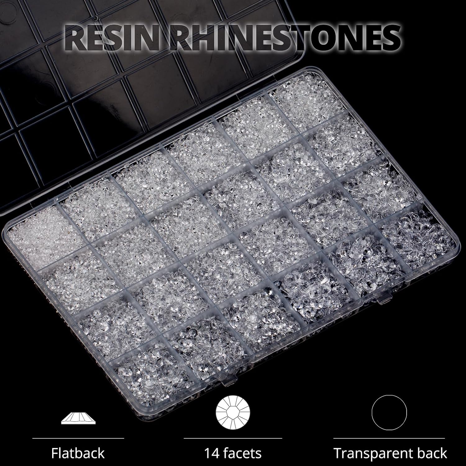 - Package Content with Tool (pickup pen and manual) -- The bedazzler kit Package includes 1 transparent rinestones set with 24 grids, approx. 30000 pcs of 2-6mm bling-out resin rhinestones