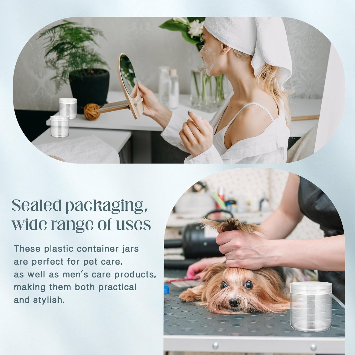 - What You Receive: there are 4 pieces plastic jars with clear screw-on lids; They are durable and refillable, measuring about 16 oz in capacity