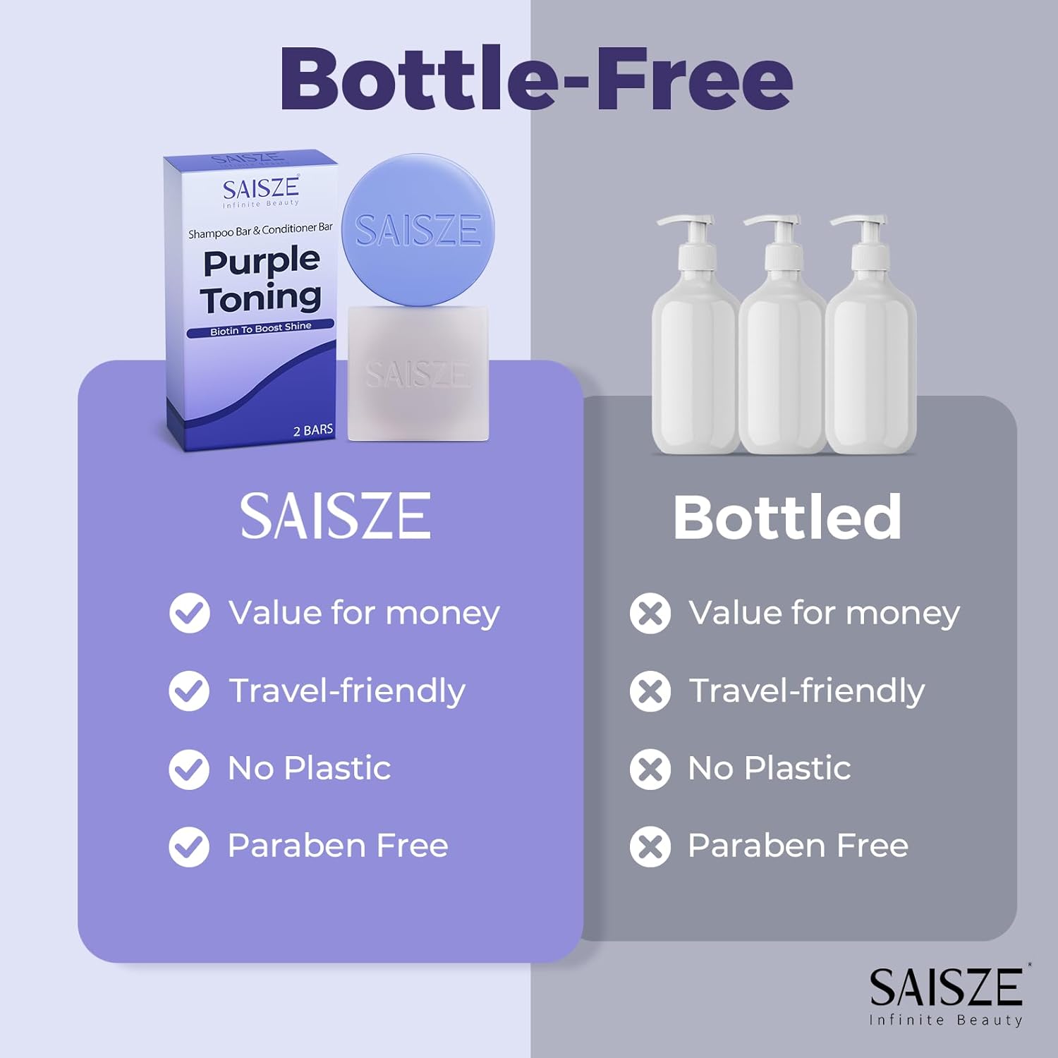 - Long Lasting: Concentrated solid bar formula provides equivalent uses to multiple bottles of liquid shampoo and conditioner