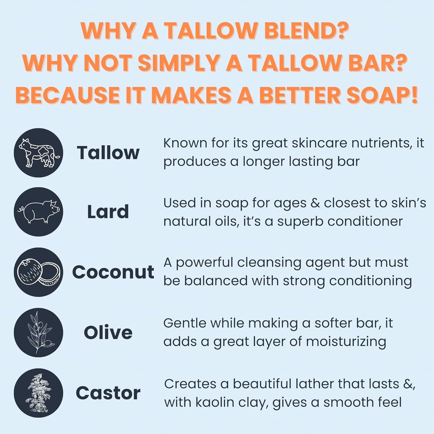 - RICH TALLOW BENEFITS: Crafted with pure grass fed tallow—known to be rich in vitamins, anti-inflammatory, and antimicrobial benefits—blended with gentle lard and premium plant oils for a nourishing lather that outperforms vegan-only bars.