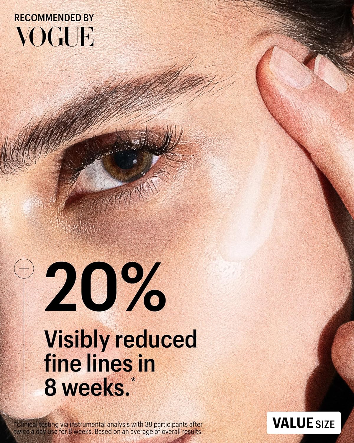 • -20% VISIBLY REDUCED FINE LINES IN 8 WEEKS. This clinically proven serum is supercharged with 3% Growth Factor Complex and 9% Lifting Peptide Complex to visibly reduce the most common fine lines and wrinkles including: forehead lines, frown lines and crowโ€™s feet.