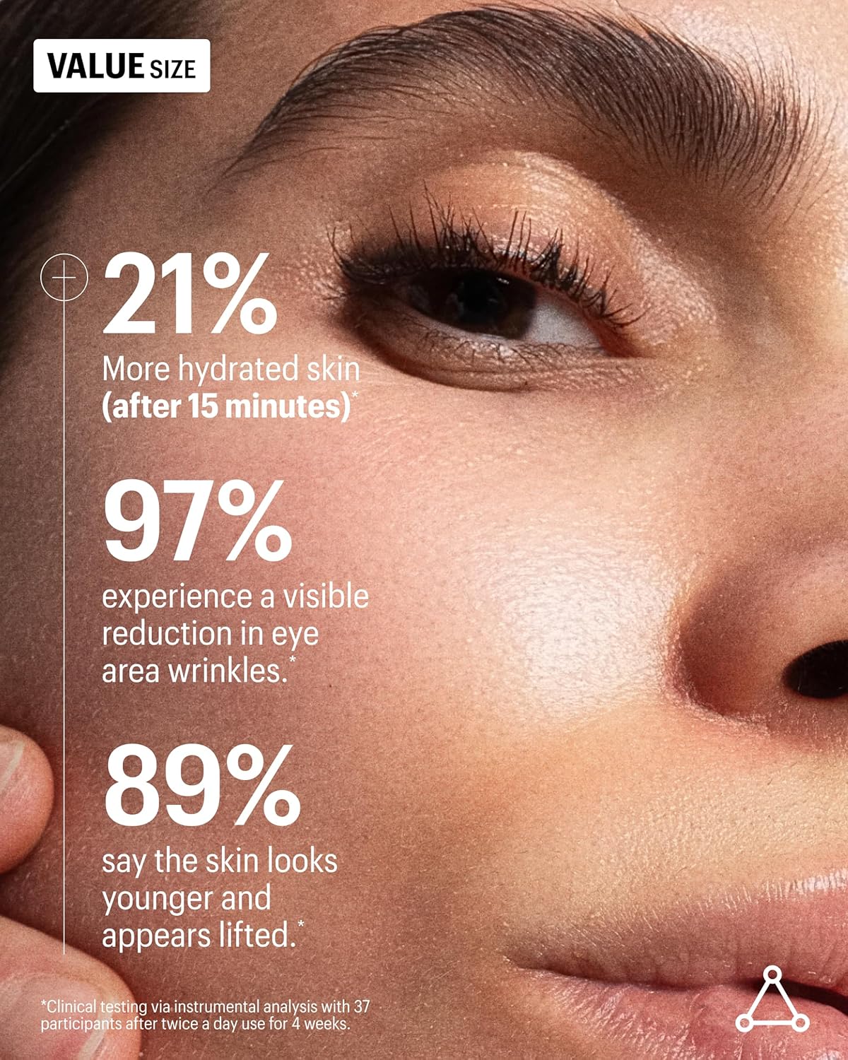 • DERMATOLOGIST VALIDATED PROVEN RESULTS. Instantly: 100% of participants witness instant skin hydration*, with +21% more hydrated skin (after 15 minutes.) After 8 weeks: 97% experience a visible reduction in eye area wrinkles, with: -24% visibly diminished crow's feet.
