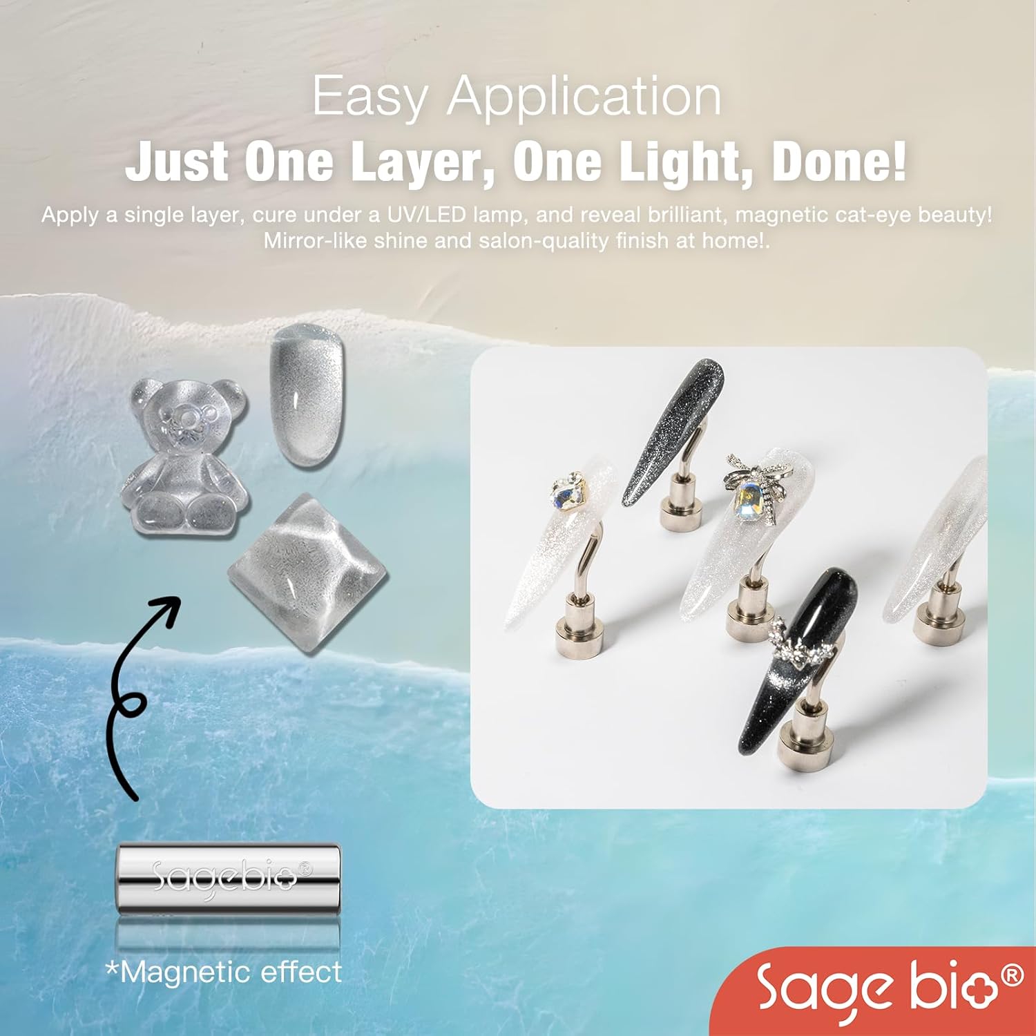 - Multifunctional Formula: SAGEBIO’s Cat Eye Gel Nail Polish combines both the base and color in one easy-to-use formula. No need for additional base or top coats, streamlining your nail art routine.