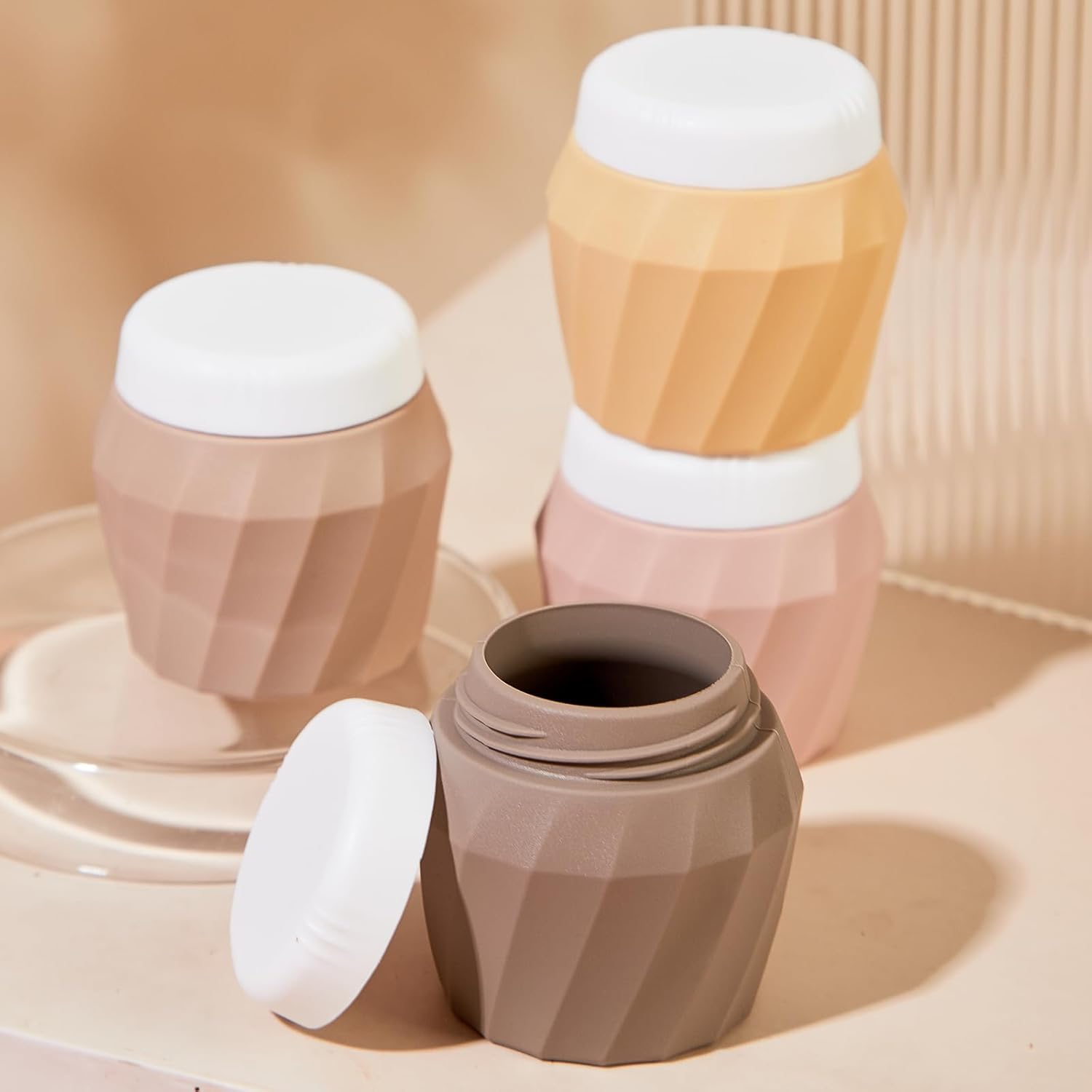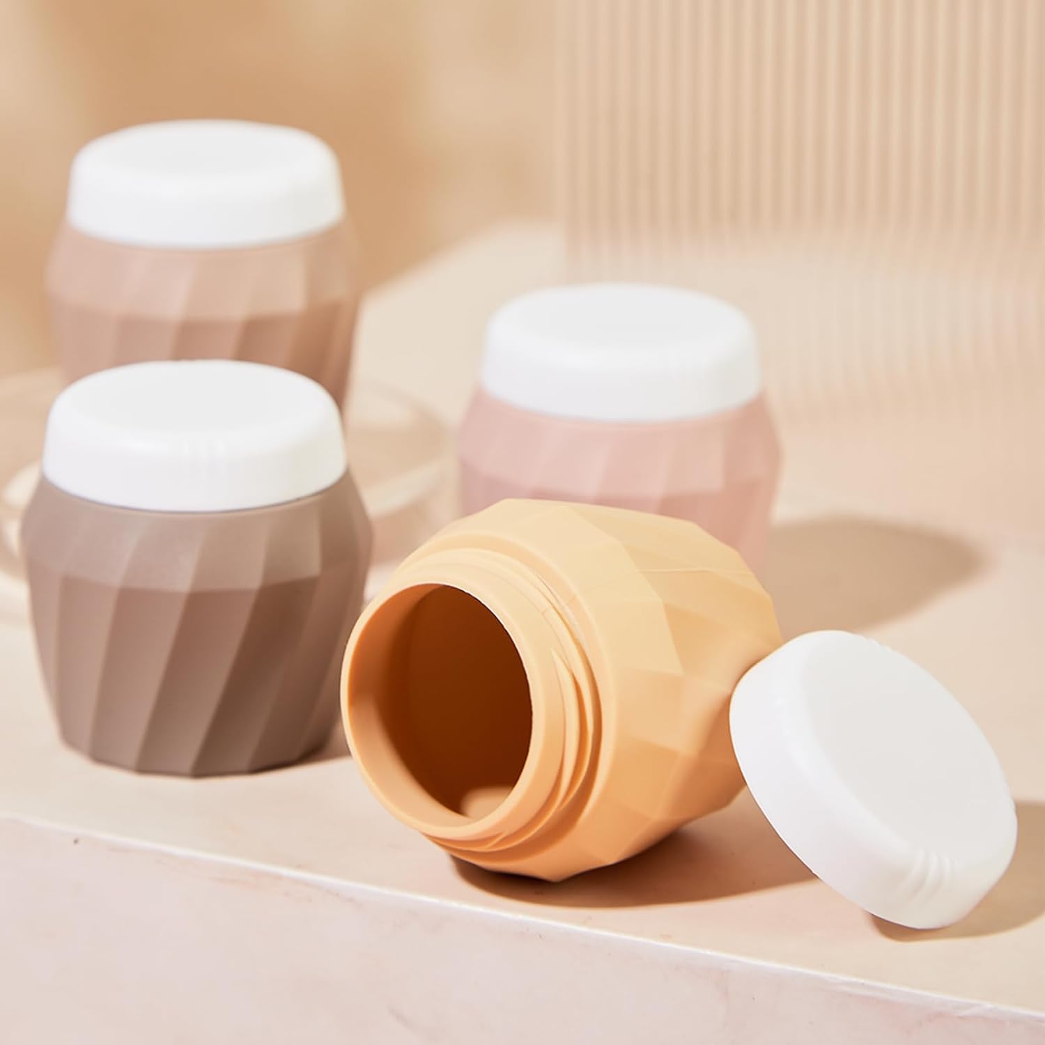 Travel Containers for Toiletries, Premium Silicone Cosmetic Cream Jars, TSA Approved Leak-Proof Refillable Travel Size Toiletries with Clear Bag for Cosmetic Face Body Cream (Apricot, 1.7OZ)