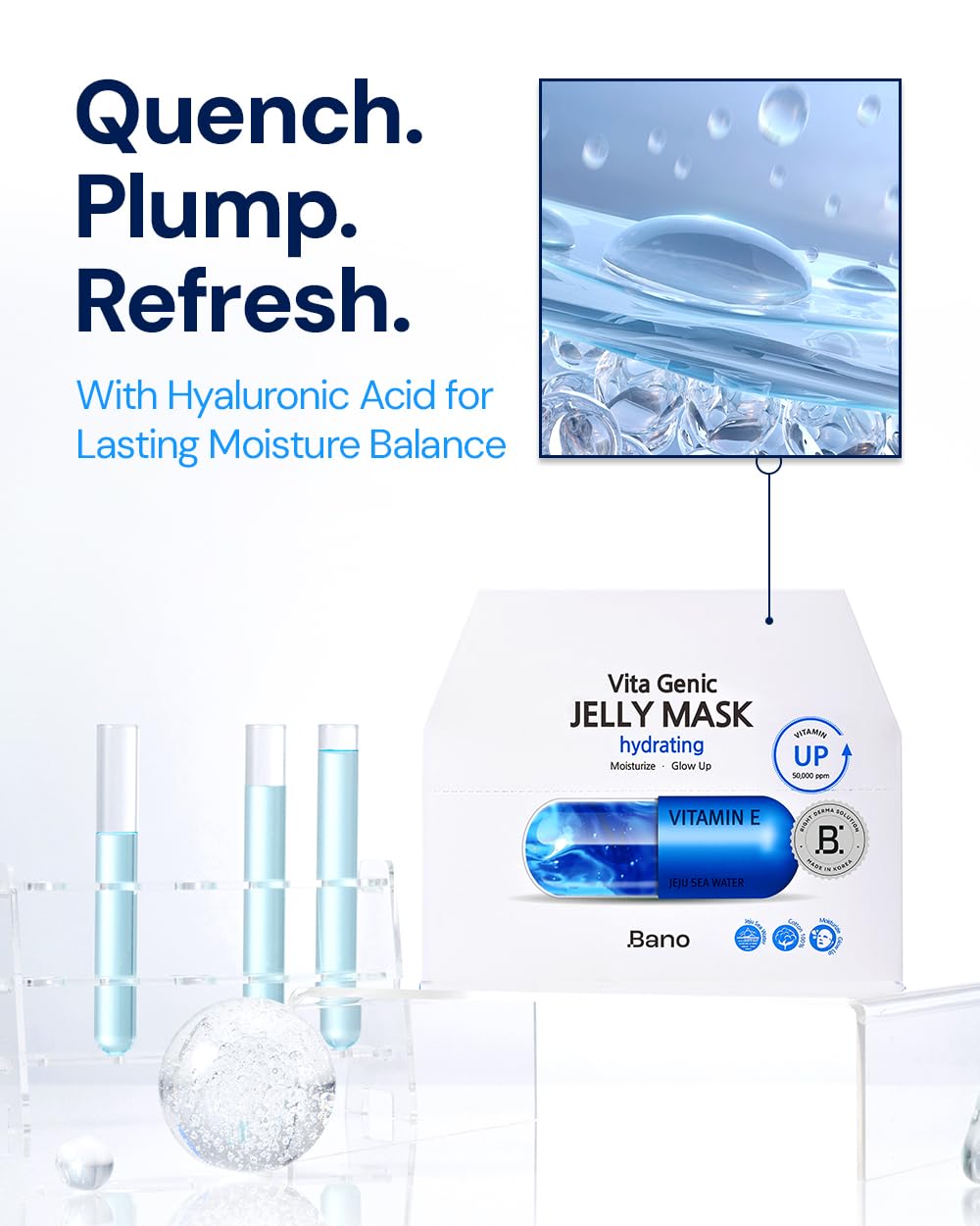 Bano Vita Genic Jelly Face Hydrating Mask 10EA – Firming Sheet Mask for Sensitive Skin, Korean Glass Skin Care with Mineral Water, Vitamin C & Niacinamide, Fragrance-Free, Pack of 2