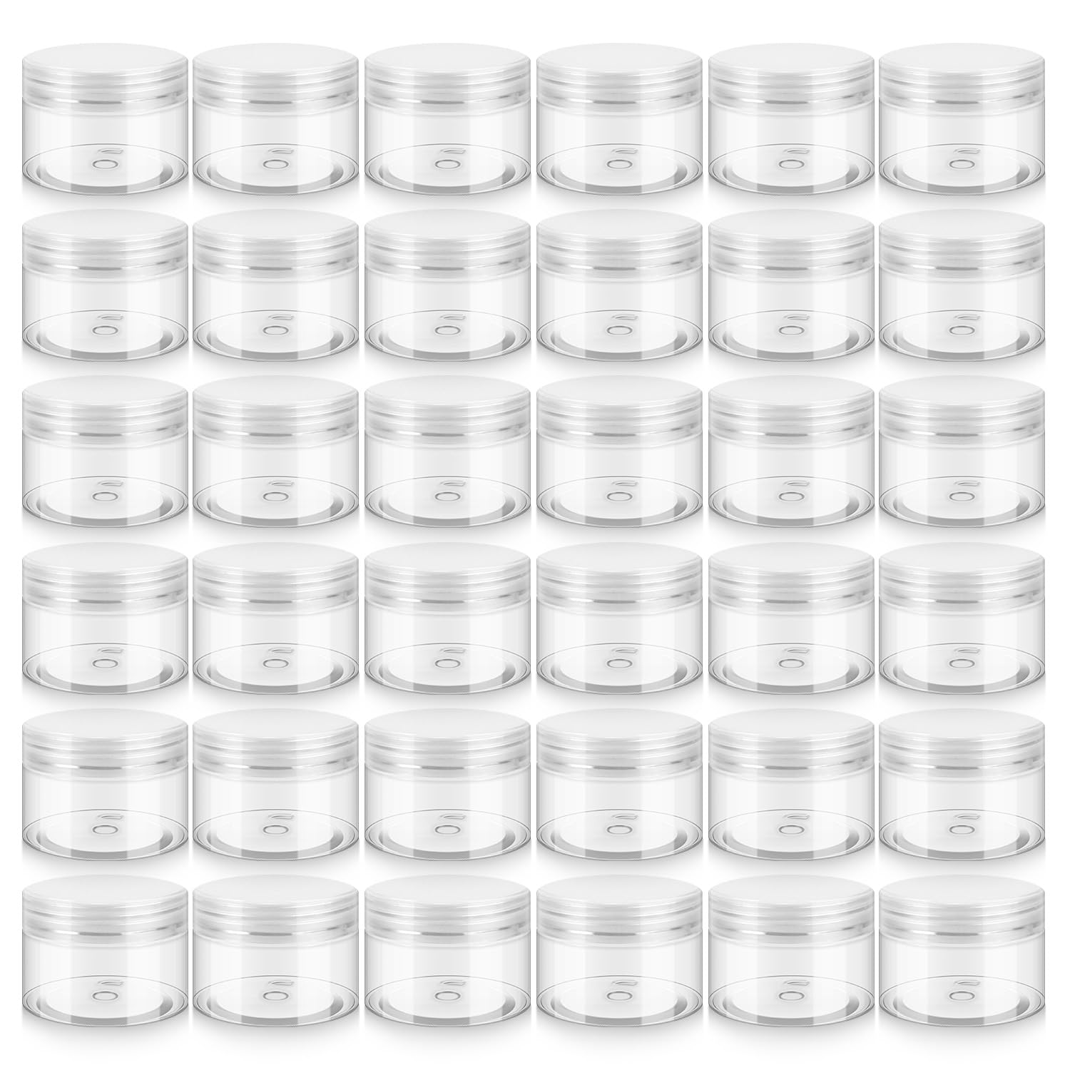 36 Pack 1 OZ Plastic Jars with Lids, BPA Free, Reusable, Refillable Transparent Cosmetic Containers for Bath Salts, Cosmetics, Powders, Beauty Product and Small Accessories, White