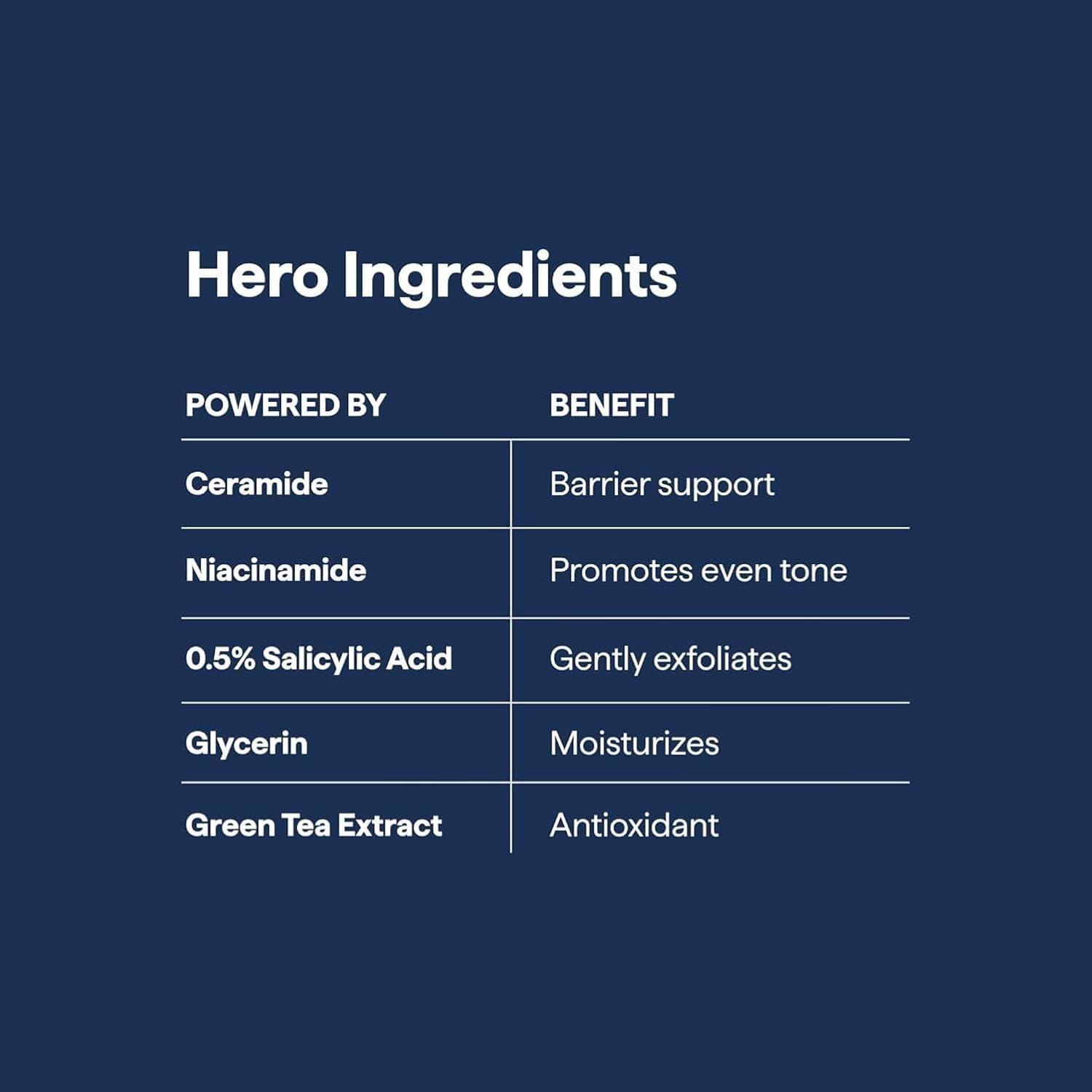 • 4 HERO INGREDIENTS Features Ceramide NP, Glycerin, Hyaluronic Acid, and Panthenol to cleanse, hydrate, soothe, and strengthen the skin barrier in one gentle formula.