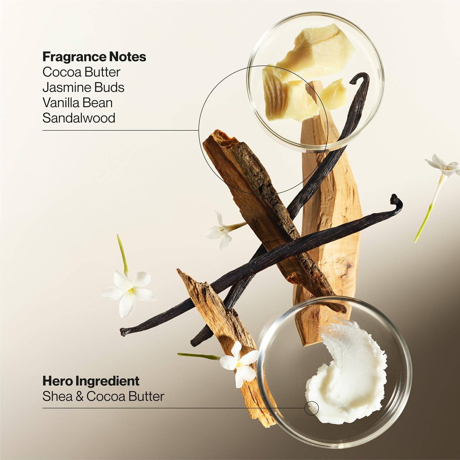 - LIGHT, BUTTERY SCENT: With fragrance notes of cocoa butter, jasmine buds, vanilla bean, and sandalwood, this skin repair lotion is ideal for hands and body, helping to restore and maintain healthy skin throughout the day