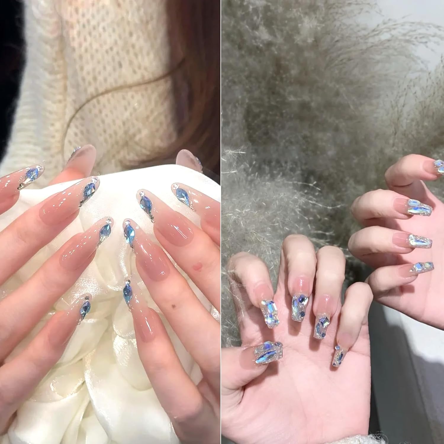 - ★Multi sized - Moonlight Blue Rhinestones for nails decorations accessories are perfect for creating 3d nail Art or decorating jewelry, makeup, body Art, diy crafts, wedding dress or shoes, cell phone cases, glasses, greeting cards, bags, guitars, scrapbooks, etc., the mixture of different sizes makes it easier to achieve different designs of nail art,which add sparkle and glamour to your crafts.
